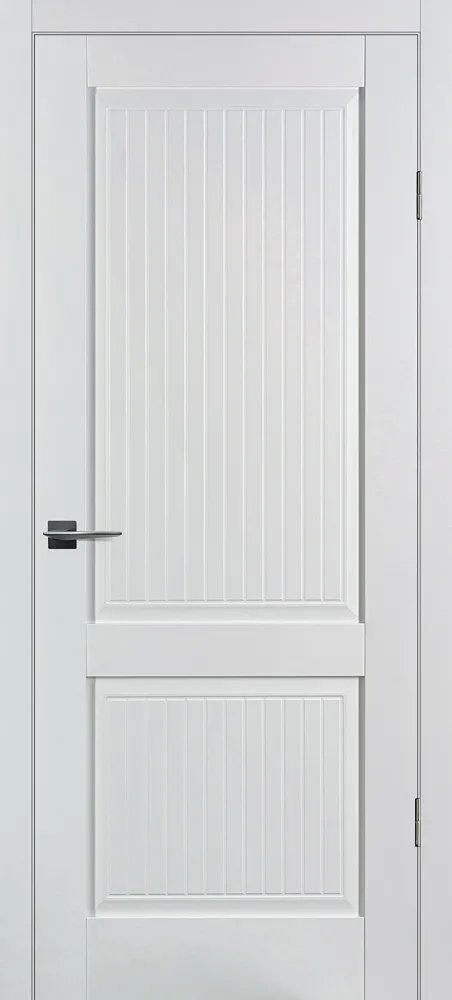 Полотно комплектуется объемной филенкой с фрезерованным рисунком "под рейку". В остекленных полотнах используется рифленное стекло с красивым прокатным узором в виде полос. Отлично смотрится в неоклассических и лофтовых интерьерах.