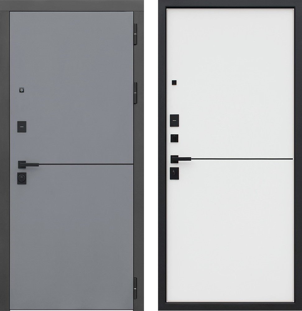 Порошковое покрытие "муар черный". . Экошпонированная панель МДФ 10 мм (цвет «альянс TF 40 IE-X-89U графит»). Декоративный молдинг 10 мм (цвет «черный»). Наличник гладкий МДФ 80 мм (цвет «черный кварц»).