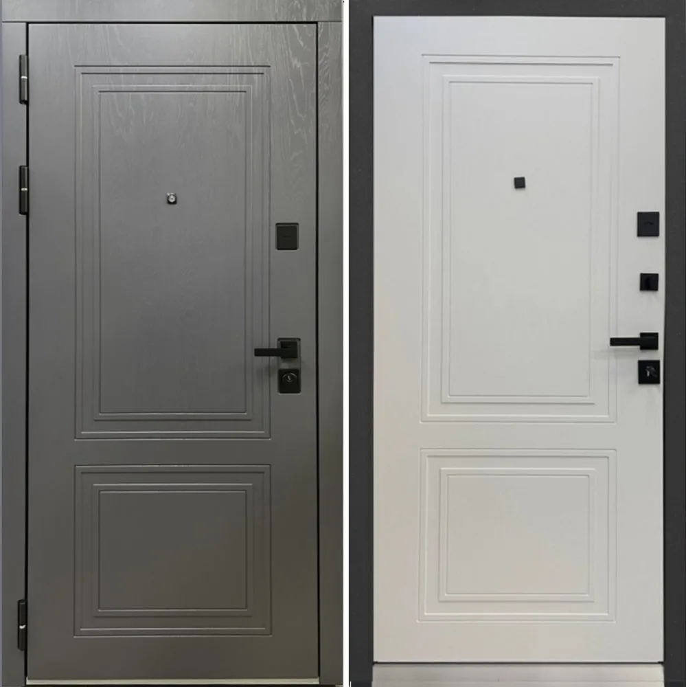 Металл: Порошково-полимерное покрытие, цвет Муар черный Отделка снаружи: лист стали + ламинированная МДФ панель 10мм , цвет Альберо Грей