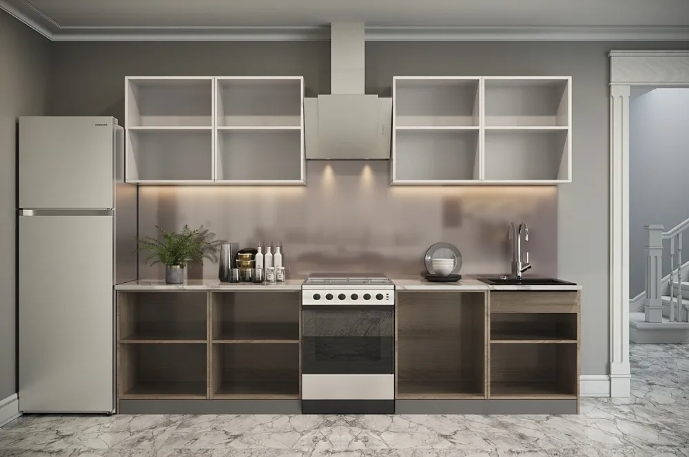 Модульные кухни - это готовые решения в наличии на нашем складе, которые состоят из отдельных корпусов разных размеров, а так же фасадов разных цветов и фактур. Из этого множества компонентов вам необходимо выбрать те модули, которые подойдут вам по размеру и дизайну или воспользоваться услугами нашего замерщика.