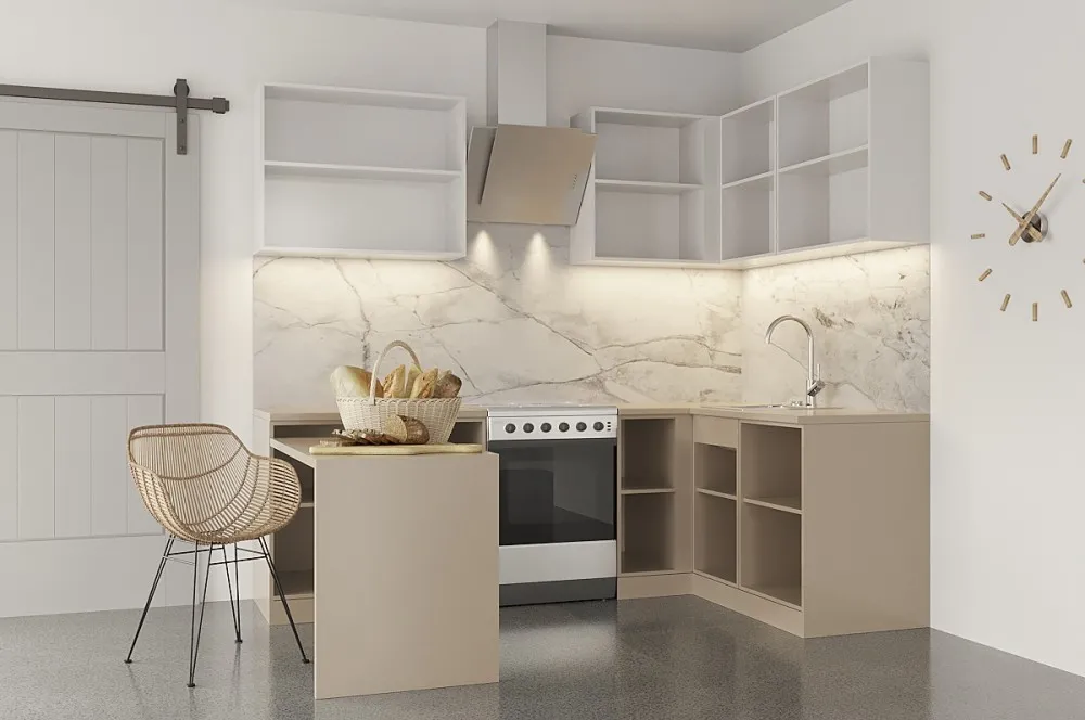 Ручки, столешница, стеновая панель, мойка, смеситель и бытовая техника продаются отдельно.